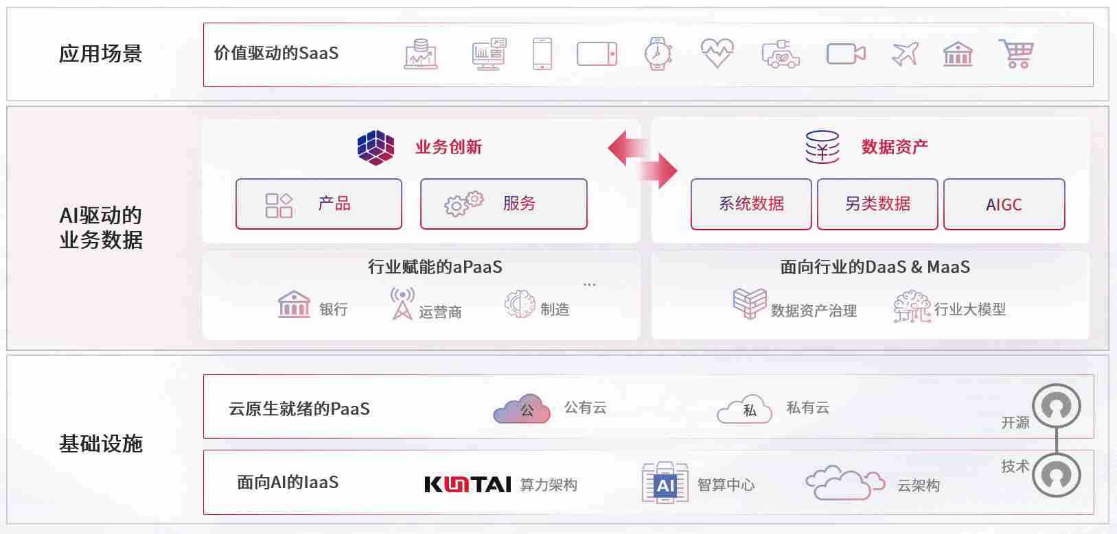 数字时代,,,,围绕企业数字化转型的关键要素,,,,234钱包数码开创性的提出数云融合战略和技术体系框架,,,着力在云原生、、数字原生、、、AI原生和信创产业上架构产品和服务能力,,,为处在不同数字化转型阶段的快消零售、、、汽车、、金融、、医疗、、政企、、教育、、运营商等行业客户提供泛在的敏捷IT能力和融合的数据驱动能力,,构建跨界融合创新的数字业务场景和新业务模式,,,,助力企业级客户建立面向未来的核心能力和竞争优势,,全面推动社会的数字化、、、智能化转型升级。。。。